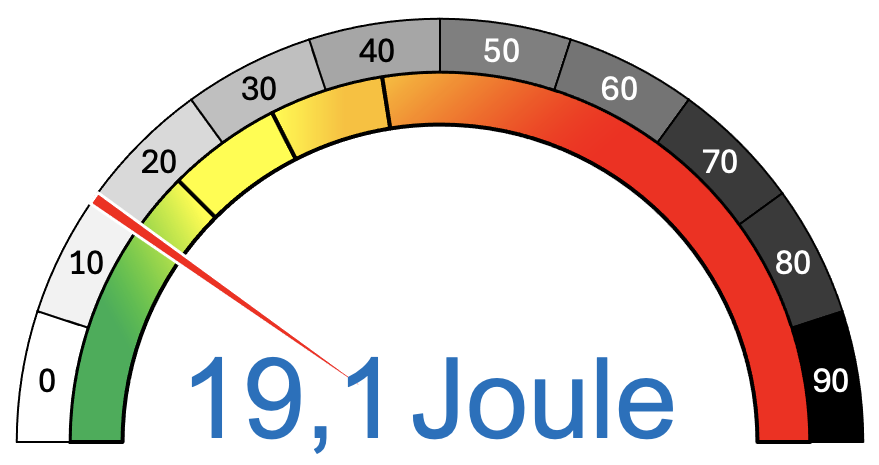 Dette projektil producerer 3000 Joule på ca. 135 meters afstand og ud til ca. 360 meter levere det 2000 Joule.