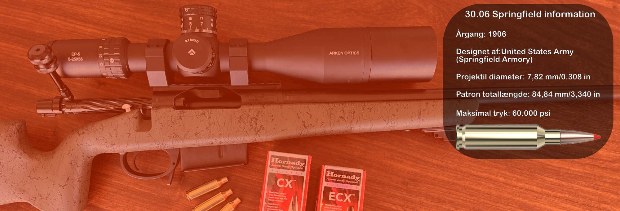 I Danmark er .30-06 Springfield blandt de mest udbredte og anerkendte jagtkalibre og betragtes af mange som en klassisk allround-patron. Den anvendes bredt til både mellemstort og stort klovbærende vildt og er et naturligt valg for jægere, der ønsker høj anslagsenergi, sikker penetration og stor fleksibilitet i valg af projektiler.