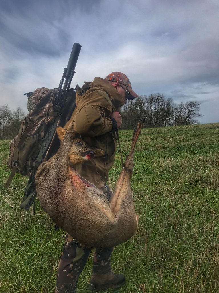Jeg finder bladet på rådyret i optikken, ånder helt ud og lader min pegefinger presse lidt hårdere på aftrækkeren. Riflen giver et højt host, der er fint dæmpet af min Nielsen Sonic Paradox 50 lyddæmper. Jeg både ser og hører at mit 308W TerminalShock projektil fra Dynamic Research Technologies rammer perfekt.