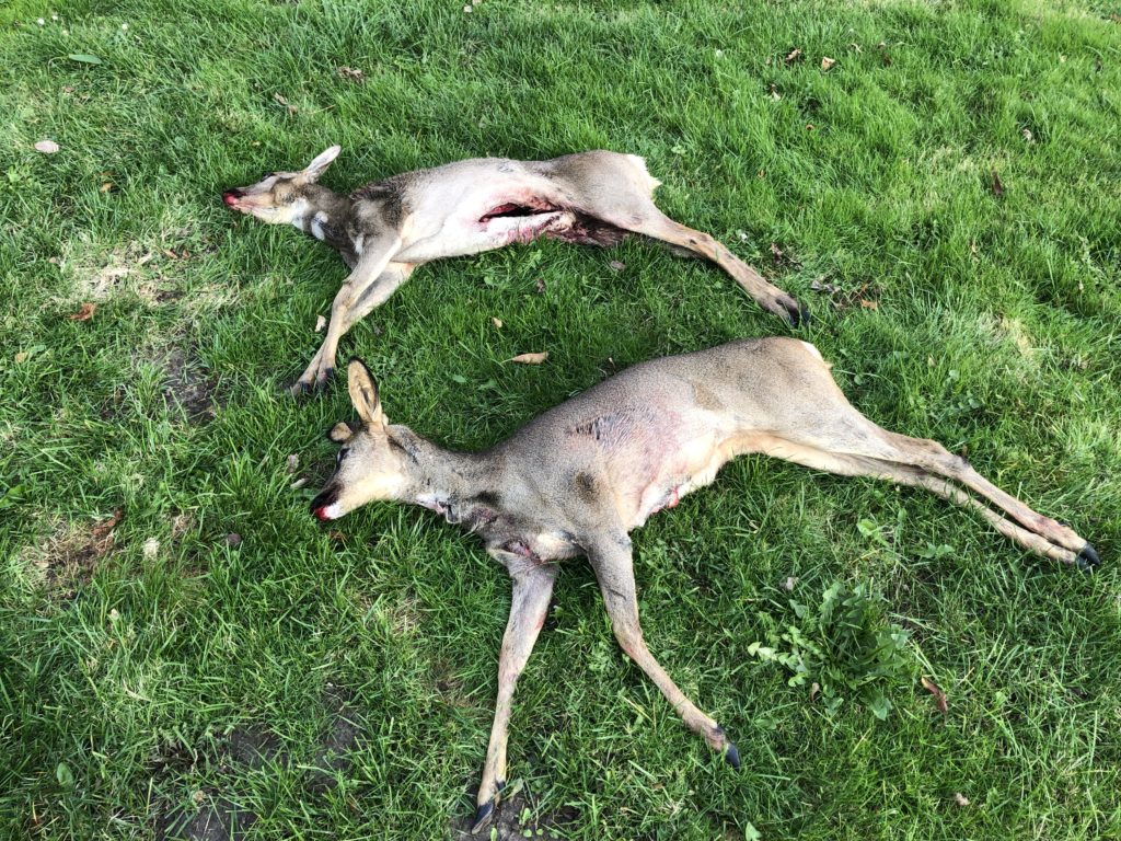 Så der ligger to rådyr på paraden. Formanden ville godt have haft et krondyr eller to, men både Freya og jeg er meget tilfredse og taknemmelige for invitationen og resultatet.