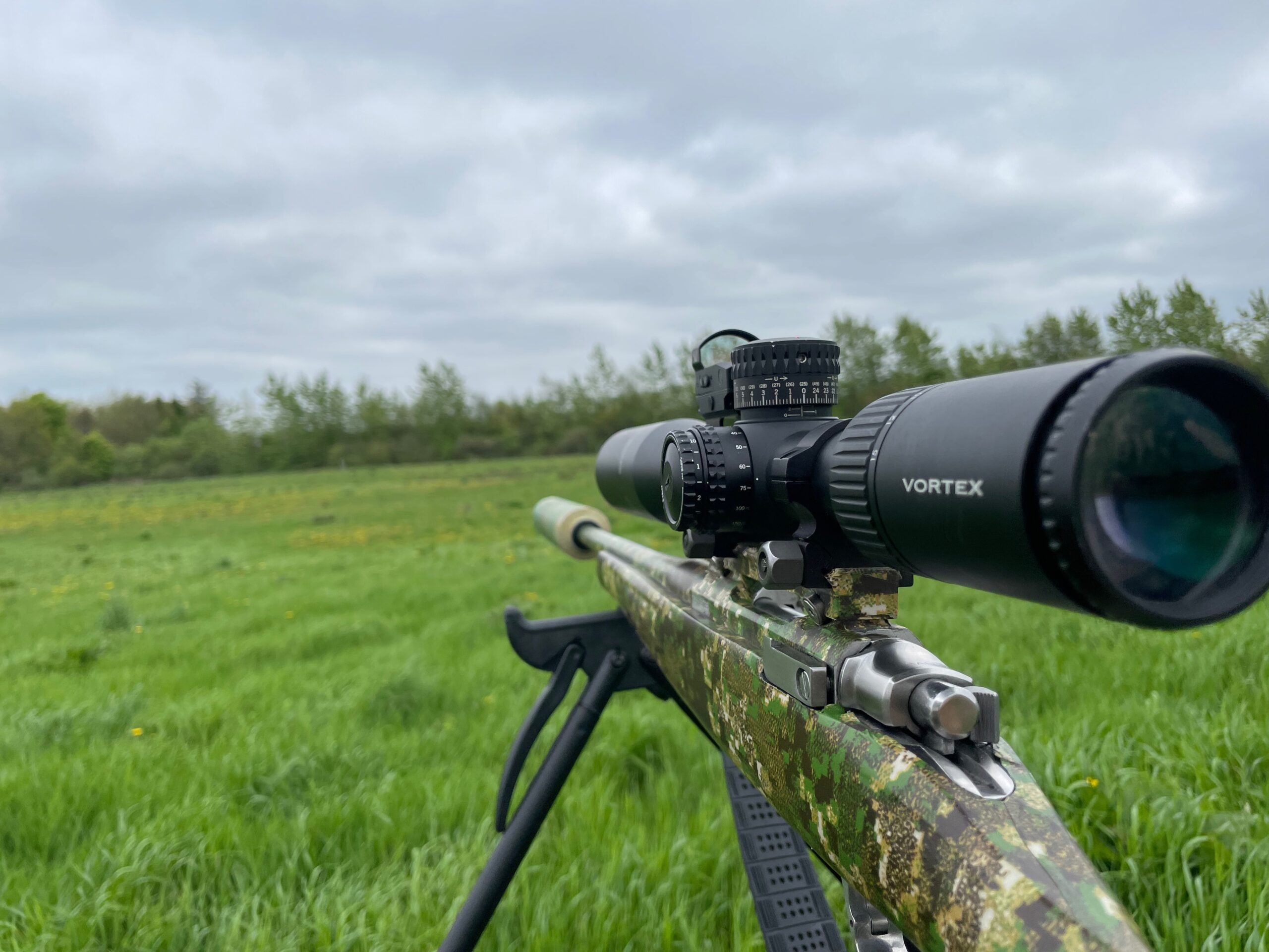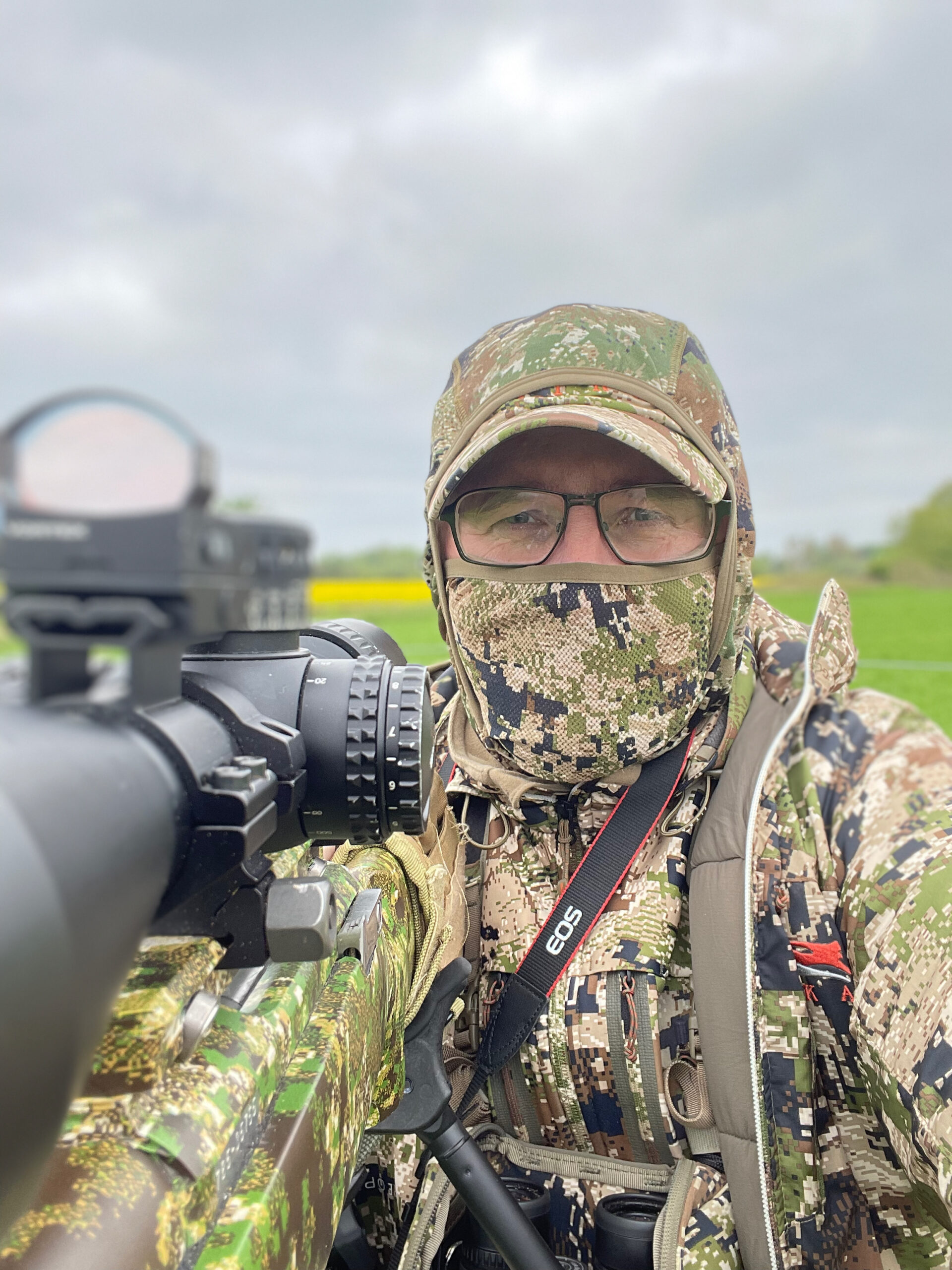 Ganske kort tid efter jeg har lagt mig, kommer der en rå ud på engen og esser. Denne gang tager jeg ikke kameraet frem, men får i stedet gjort min skydestilling helt klar, så jeg kan tage bukken hvis han kommer frem.